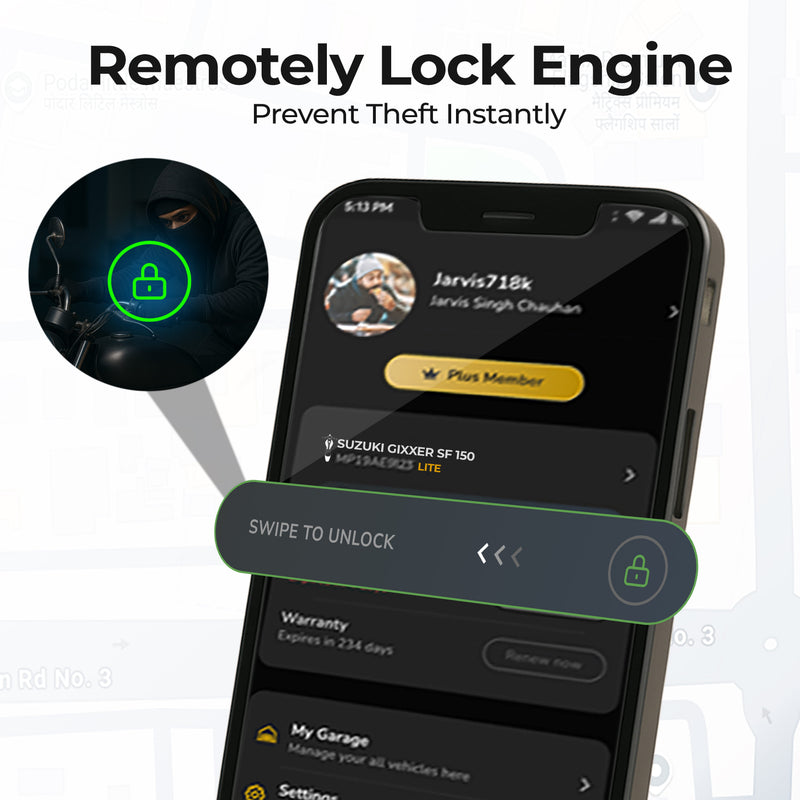 ✔ Remote engine lock for anti-theft